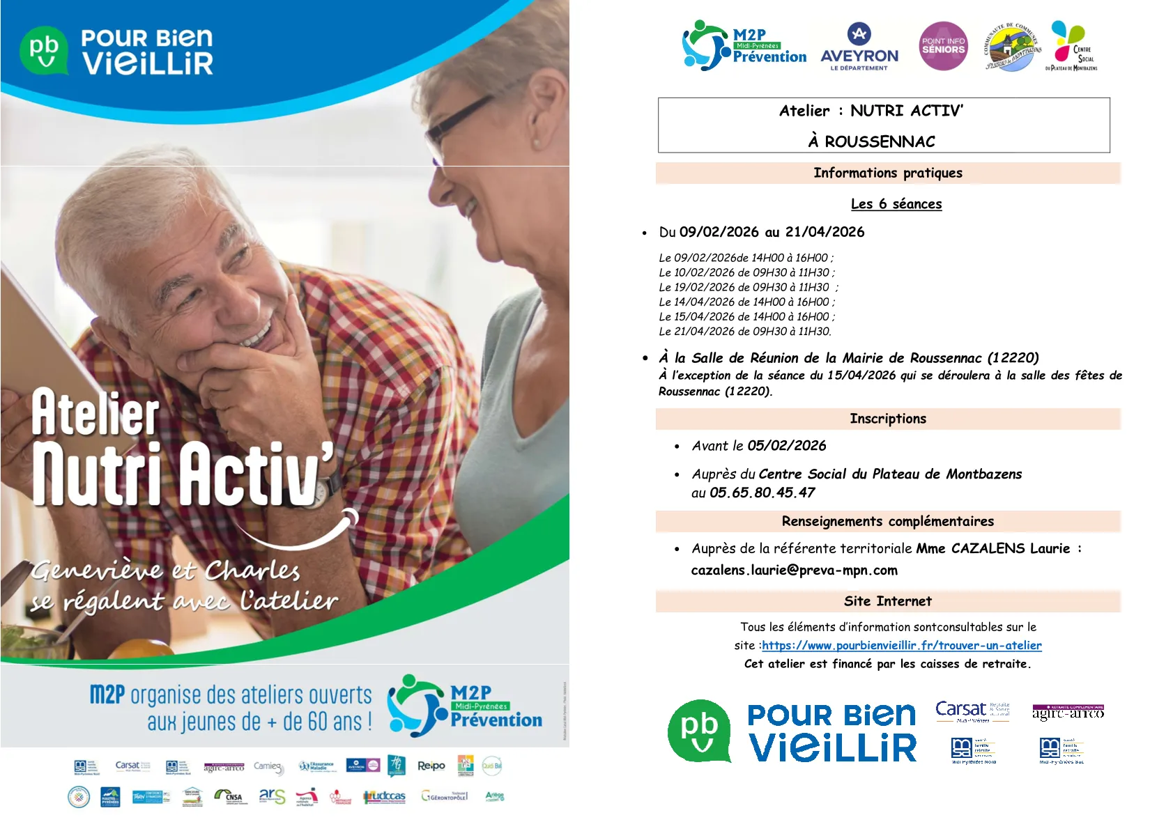 (Cette initiative est proposée par le pôle Actions Collectives Seniors du Point Info Seniors du Plateau de Montbazens en partenariat avec l’association M2P – Midi Pyrénées Prévention et la Mairie de Roussennac)
