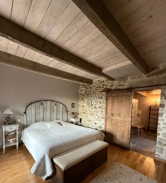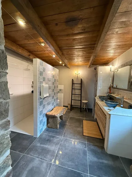 Chaque chambre pour 1 couple comprend 1 lit 160×200 et sa salle d’eau (douche à l’italienne) et WC séparé.