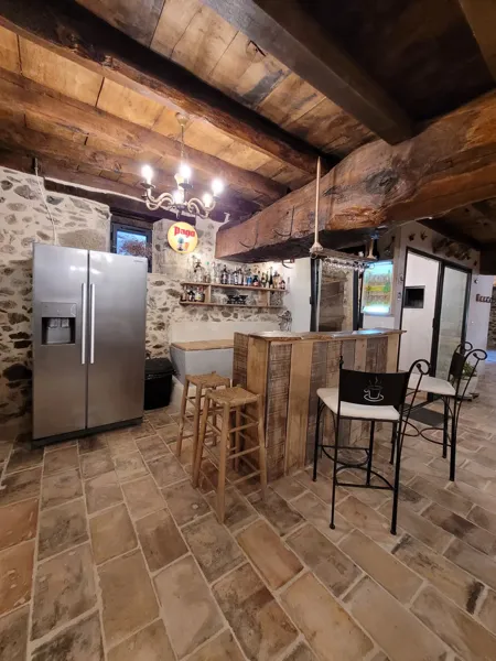 – Son petit coin bar : comptoir et tabourets hauts – frigo américain – évier – rangements
